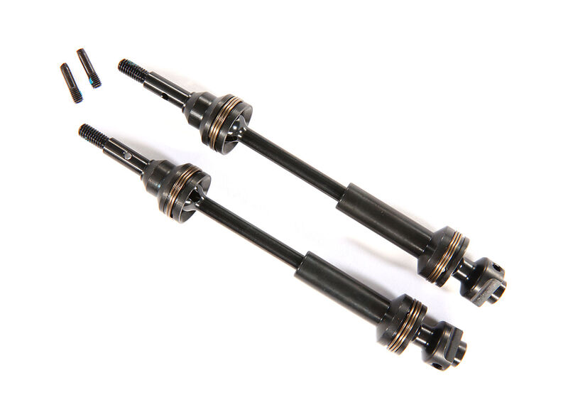Diseñados específicamente para Monster Trucks, estos ejes están fabricados para soportar el brutal torque del motor 540XL y el agarre de los enormes neumáticos Sledgehammer®. Su exclusivo diseño telescópico estriado ofrece una articulación completa, por lo que nunca es necesario limitar el recorrido de la suspensión. Fabricados por Traxxas, para Traxxas, siempre puede confiar en una instalación sencilla y un ajuste perfecto.