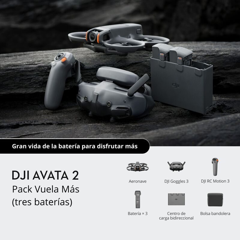 Con tres baterías, este pack ofrece más tiempo de vuelo con una experiencia inmersiva en FPV llena de adrenalina, con mejores imágenes, seguridad y vida de la batería. Aumenta la diversión al emparejar Avata 2 con las nuevas DJI Goggles 3 y DJI RC Motion 3.