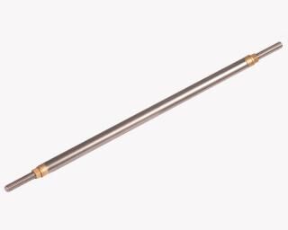 Eje de barco Fine Line 102mm M4 acero inoxidable delgado fabricado en acero inoxidable con rosca M4 en ambos lados. Los tubos de popa tiene un diámetro de 6mm y están equipados con casquillos de láton. Con espaciadores y dos contratuercas M4 de latón. Tenga en cuenta: Los ejes de barcos Fineline requieren acoplamientos con una conexión de rosca M4.