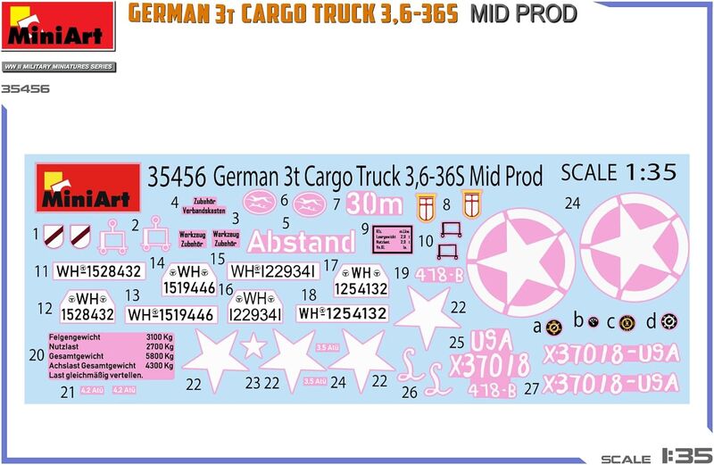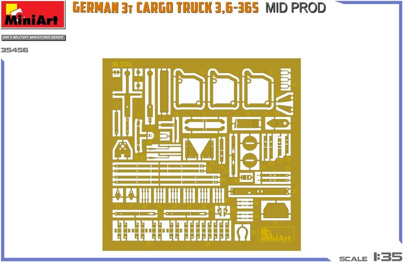 Recrea el icónico camión de carga alemán de 3 toneladas 3,6-36S con este detallado modelo a escala 1:35 de MiniArt. Este camión de la Segunda Guerra Mundial, de producción intermedia, cuenta con un motor, un interior y un área de carga personalizables, con opciones de caja abierta o lona. El kit incluye fotograbados para mayor realismo y calcomanías para cinco versiones históricas, incluyendo unidades en Ucrania, Francia y una versión estadounidense capturada. Perfecto para entusiastas y modelistas de la Segunda Guerra Mundial, este kit ofrece precisión histórica y una gratificante experiencia de construcción.