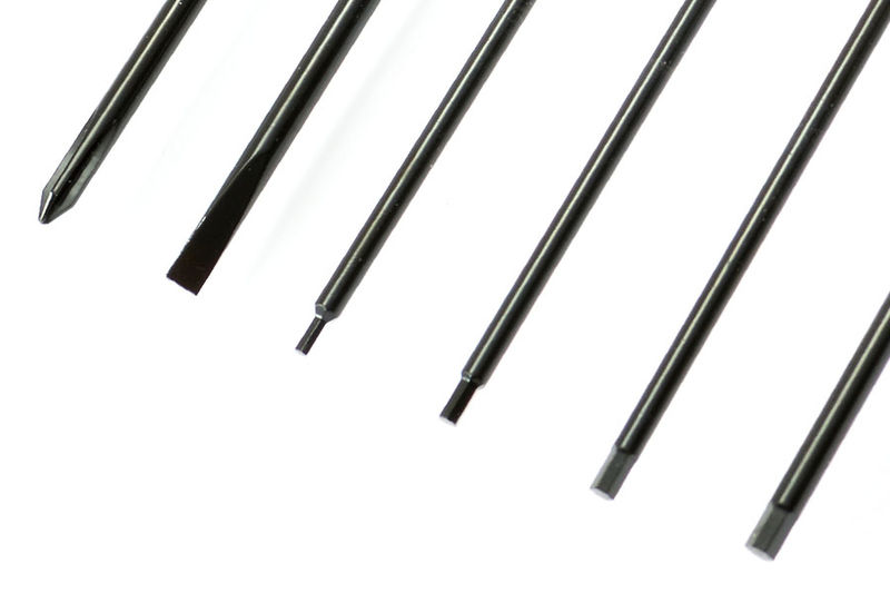 El set incluye 6 destornilladores con mango, de punta intercambiable, muy resistentes y con una gran ergonomía que nos permiten aplicar la fuerza necesaria.